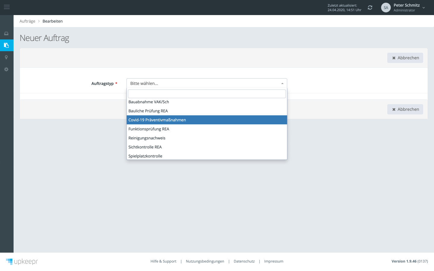 Unser Team hat anhand offizieller Richtlinien verschiedene Checklisten erarbeitet, welche ein transparentes & effizientes Aufgabenmanagement für die empfohlenen und verpflichtenden Maßnahmen ermöglichen. Wenn Maßnahmen durchgeführt und mit upkeepr protokolliert wurden, können wie gewohnt PDF-Dateien von den Protokollen erzeugt und als Nachweis verwendet werden.
